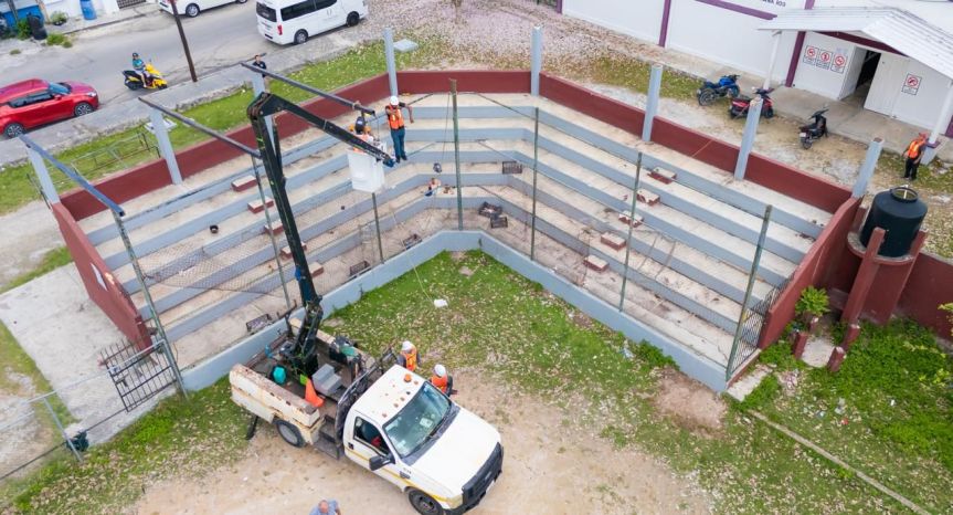 Durante la jornada, el edil también realizó un recorrido de supervisión por la unidad deportiva en compañía del director de Servicios Públicos, donde constató los avances de la obra y aseguró que el dinero del pueblo se está reflejando en obras en beneficio de las y los cozumeleños, fortaleciendo la infraestructura deportiva de la isla.